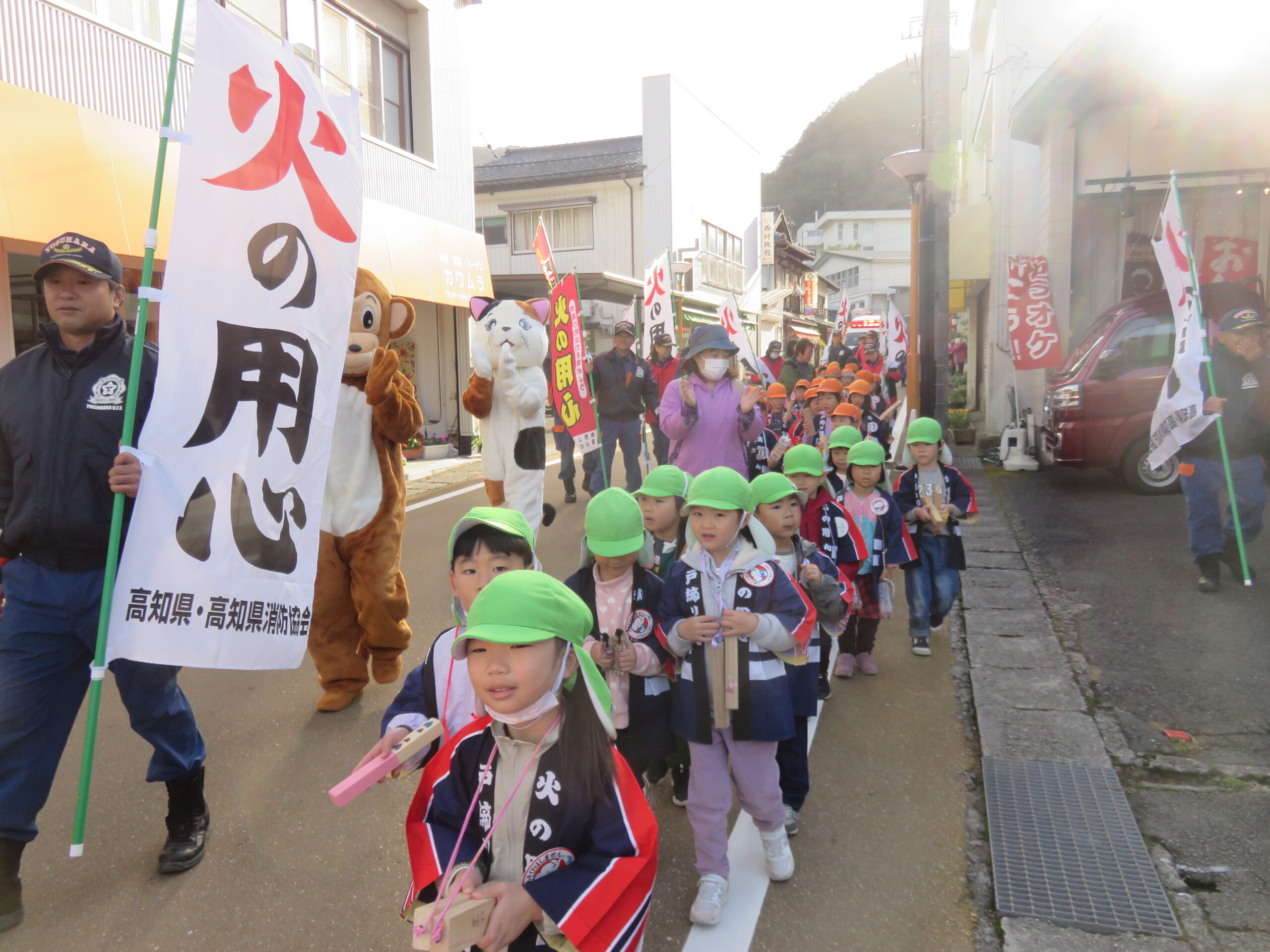 11月に梼原町の消防団の皆さんと火の用心を呼びかけながら、町内を歩きました。